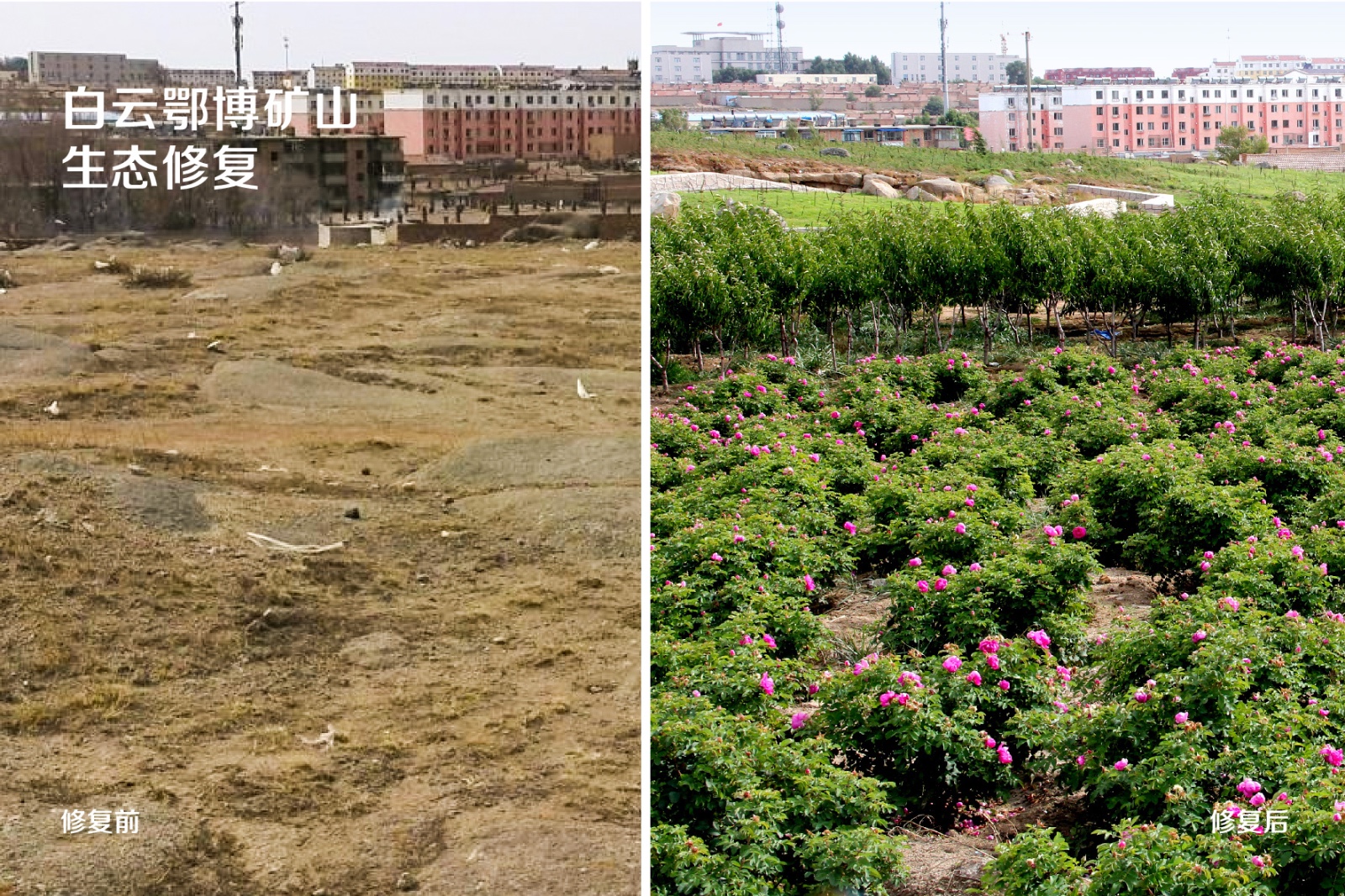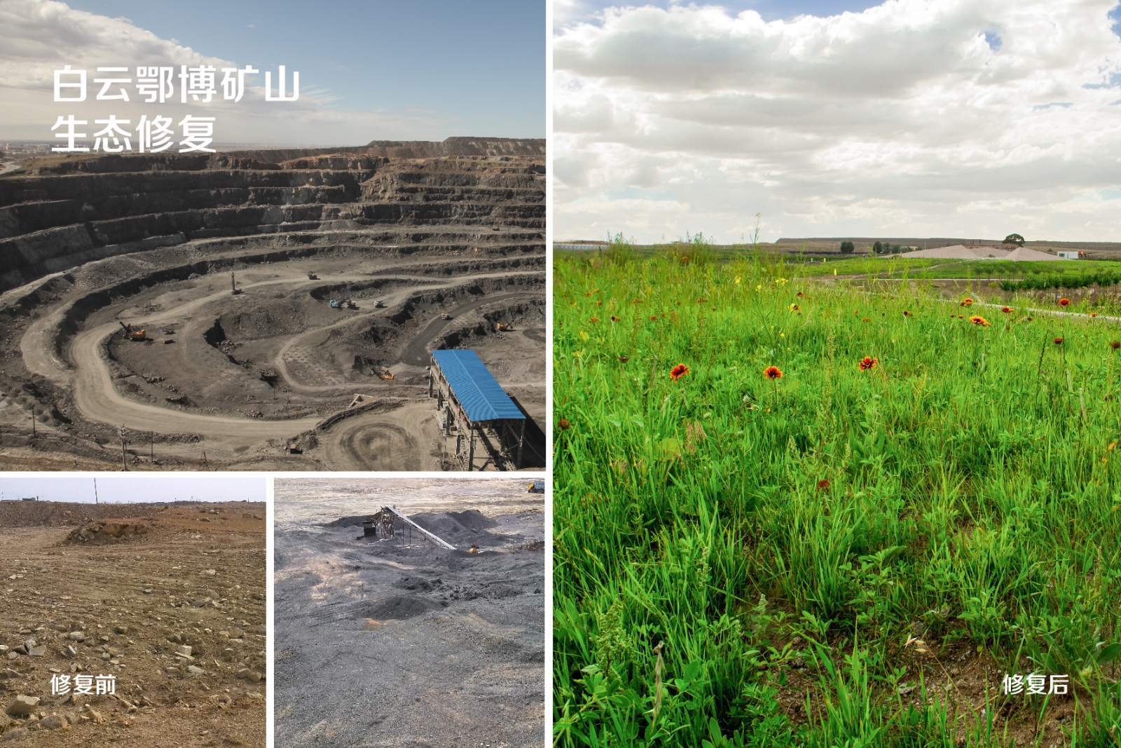 蒙草團隊秉持“打造循環(huán)生態(tài)”的原則,治理白云鄂博礦區(qū)環(huán)境,將現(xiàn)代工業(yè)文化與原始游牧草原環(huán)境相結合,打造可觀可賞,具有工業(yè)精神與民族特色的公共綠地。
