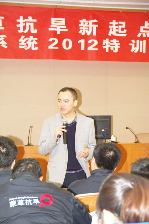 12月10日,蒙草抗旱新起點2012工程系統(tǒng)特訓(xùn)營的室內(nèi)課程培訓(xùn)正式開始。在早晨6點半到7點半的早訓(xùn)之后,上午8點30分在黨校主樓230教室由桑宏生主講《成功執(zhí)行力》,此課程授課一整天。