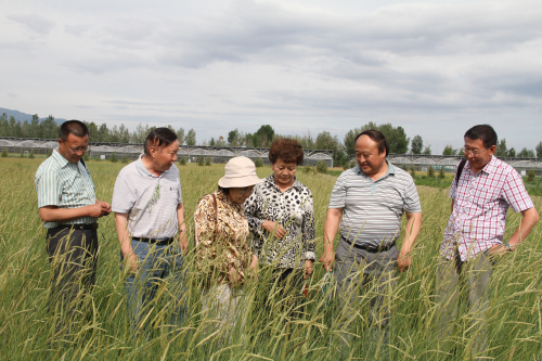領(lǐng)導(dǎo)專(zhuān)家們深入土左基地的蒙農(nóng)4號(hào)新麥草種植明地