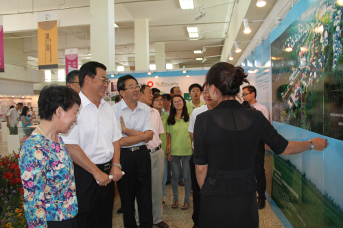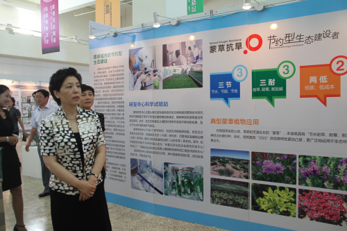 各位領(lǐng)導首先對我公司在抗旱植物研發(fā)和推廣應用方面所取得的成績給予了肯定。隨后,在我公司承建的內(nèi)蒙古博物院綠化工程展區(qū)前,各位領(lǐng)導談起當初該工程在植物種類選取、色彩搭配、凸顯地方特色時,充分肯定了該工程綜合多種因素考慮最終選擇“3321”蒙草植物的正確性,并表示事實也證明蒙草植物確實經(jīng)受住了考驗。當進一步參觀至公司清水河縣小城鎮(zhèn)環(huán)境修復項目展區(qū)前,自治區(qū)政協(xié)主席任亞平再次對公司在干旱缺水地區(qū)和自治區(qū)縣域經(jīng)濟發(fā)展過程中做出的貢獻給予了肯定。
