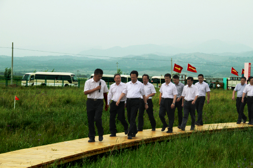 觀摩檢查組行走在萬(wàn)畝草原建設(shè)現(xiàn)場(chǎng)