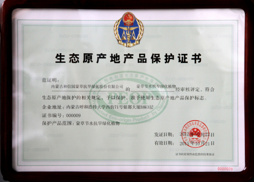 “蒙草節(jié)水抗旱綠化植物”被列為首批國家生態(tài)原產(chǎn)地保護產(chǎn)品,是對蒙草植物選種、育苗、擴繁等成果的積極肯定,更為倡導節(jié)約型生態(tài)建設(shè)、推廣應(yīng)用蒙草節(jié)水抗旱植物發(fā)揮重要的積極作用。