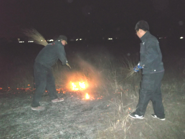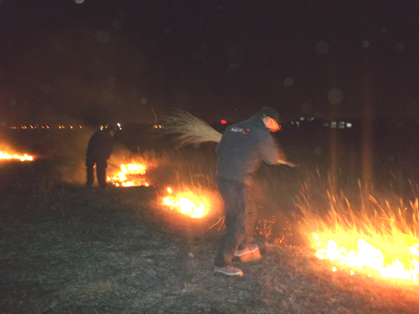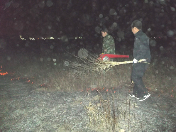 2014年3月26日晚23時(shí),當(dāng)人們還沉浸在溫暖的小家即將進(jìn)入夢(mèng)鄉(xiāng)的時(shí)候,位于呼市新城區(qū)保合少鎮(zhèn)甲蘭板村西側(cè),突然燃起熊熊大火,火勢(shì)借助風(fēng)勢(shì)迅速蔓延。此時(shí),距離火場(chǎng)2公里外的蒙草抗旱大青山萬(wàn)畝草原項(xiàng)目部人員還在梳理和安排工作,項(xiàng)目經(jīng)理張成學(xué)接到火情電話后,迅速布置安排。大家拿起項(xiàng)目部?jī)?chǔ)備的滅火工具,組成臨時(shí)救火隊(duì)奔向大火現(xiàn)場(chǎng)。