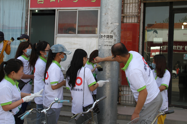 “草精靈”們放棄休息時(shí)間,早早地來(lái)到和林縣城,頭頂烈日,手拿勞動(dòng)工具,風(fēng)風(fēng)火火地干起來(lái)!有些志愿者負(fù)責(zé)撿拾道路兩邊和綠化帶里的垃圾,并整治非機(jī)動(dòng)車(chē)的亂停放;另一些志愿者們則集中起來(lái),對(duì)路邊的黑色廣告進(jìn)行鏟除。經(jīng)過(guò)一上午的勞動(dòng),幾條街道的環(huán)境面貌有了煥然一新的感覺(jué),“草精靈”們用辛勤的汗水換得居民的稱贊,用無(wú)聲的行動(dòng)起到帶頭作用。