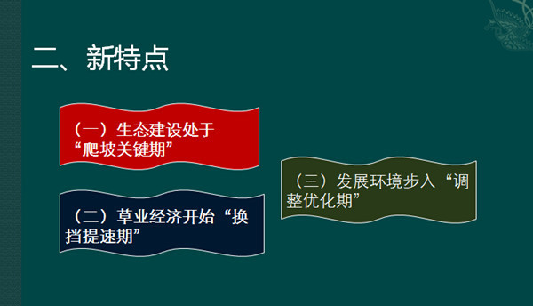 這個時期有三個特點,一個是生態(tài)建設(shè)處于爬坡關(guān)鍵期;二是草原經(jīng)濟開始換擋提速期;三是發(fā)展環(huán)境步入調(diào)整優(yōu)化期。而這個“生態(tài)建設(shè)爬坡關(guān)鍵期”有三個問題,也是三個最難啃的硬骨頭。