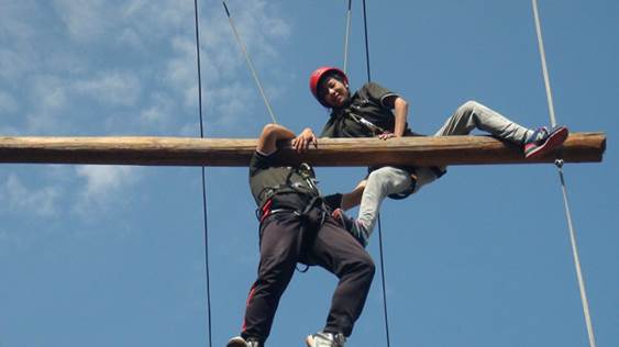 ★高空斷橋考驗(yàn)團(tuán)隊(duì)成員的“亮劍精神”,小伙伴們成功克服心理畏懼,可謂“斷橋一小步、人生一大步”。