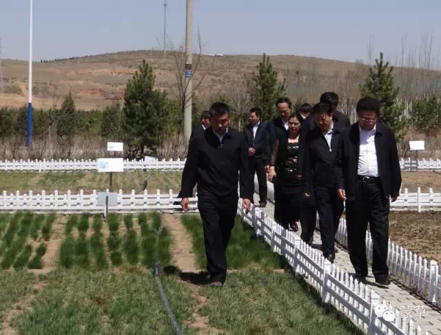 馮新柱一行在蒙草植物原種選育試種區(qū)參觀