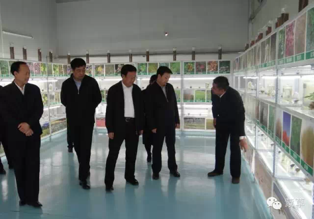 蒙草董事長(zhǎng)王召明在標(biāo)本室向馮新柱一行介紹北方常見植物