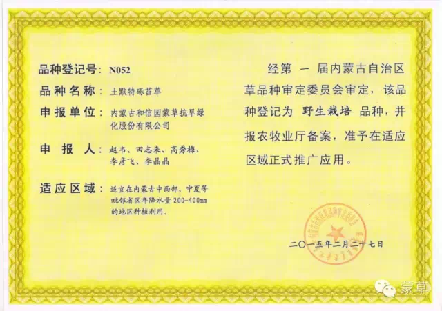 由蒙草公司歷時(shí)七年馴化的野生鄉(xiāng)土植物土默特礫苔草日前經(jīng)第一屆內(nèi)蒙古自治區(qū)草品種審定委員會(huì)審定,該品種登記為野生栽培品種,并報(bào)農(nóng)牧業(yè)廳備案,準(zhǔn)予在適應(yīng)區(qū)域正式推廣應(yīng)用。