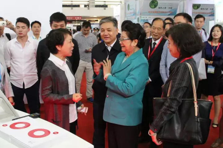 蒙草公司總經(jīng)理為全國人大原副委員長顧秀蓮,環(huán)保部副部長吳曉青等領(lǐng)導講解蒙草參展情況。