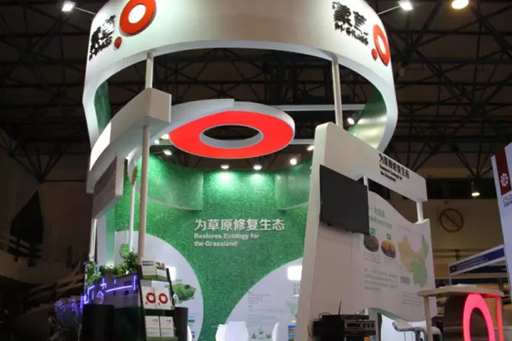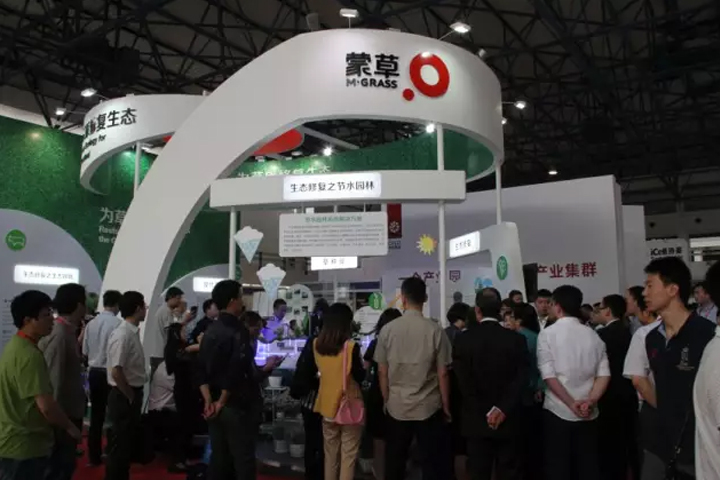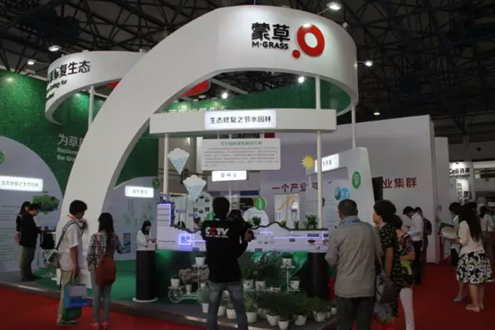 位于展廳主通道的蒙草展廳,本著節(jié)能生態(tài)綠色的理念,成為展會的焦點。