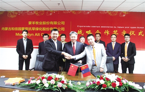 2015年3月30日,蒙草公司、蒙羊牧業(yè)與蒙古國蒙古之金公司(Mongolyn Alt Corporation)達(dá)成戰(zhàn)略合作并簽署備忘錄。