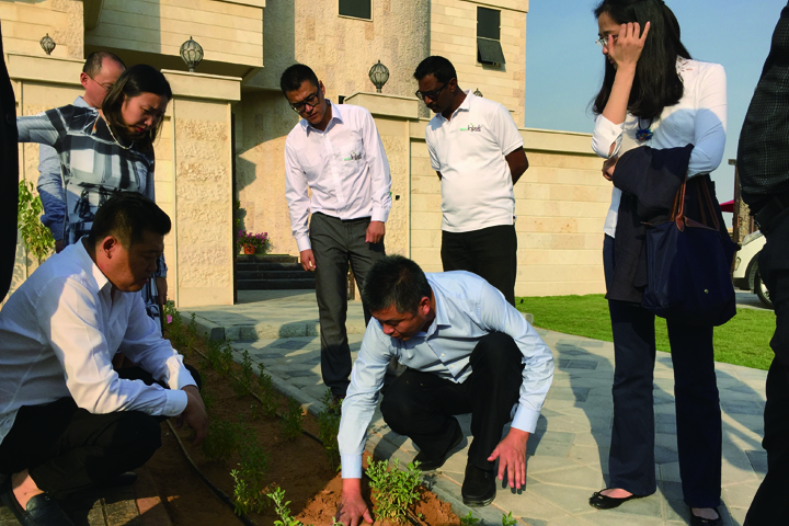 蒙草董事長王召明帶領研發(fā)及工程負責人,綠色森林董事長戴瑋,阿聯(lián)酋經(jīng)濟部副部長Abdulla Ahmed Al Saleh,迪拜Nakheel集團景觀工程負責人Ali Abdalla Ali Shehail(阿里沙艾爾),中國駐迪拜總領事館領事馬冀忠,人民日報海外版中東辦事處主任唐振剛等共同參加系列活動。