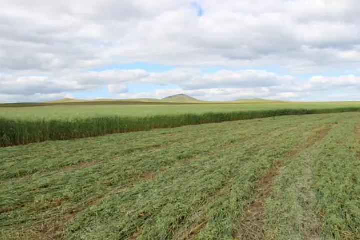 近年來,由于草原退化、草原禁牧,導(dǎo)致烏拉蓋地區(qū)天然草的產(chǎn)量無法滿足家畜在冬季對牧草的需求。2015年蒙草團(tuán)隊進(jìn)入烏拉蓋草原修復(fù)地區(qū),立體分析了當(dāng)?shù)氐闹脖?、土壤、牧草產(chǎn)量等數(shù)據(jù)。研究人員選擇不同品種的一年生與多年生、豆科與禾本科牧草混播的方式建植人工草地。通過增加土壤氮素和有機(jī)質(zhì)含量,提高牧草蛋白質(zhì)的質(zhì)量。經(jīng)過一輪的修復(fù)治理后,生態(tài)修復(fù)與牧草業(yè)集成取得了較好的成果。烏拉蓋402畝人工草地共收獲牧草143.5噸,相當(dāng)于當(dāng)?shù)靥烊荒敛莓a(chǎn)量的1.8—4.3倍??鄢杀就度耄敛輧羰杖霝?.7萬元。