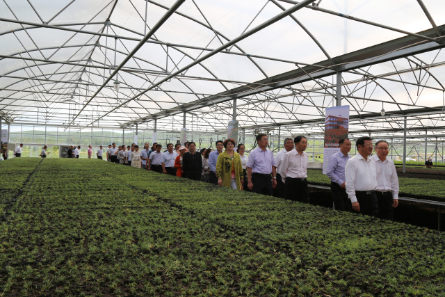 2016年8月25日,國(guó)家林業(yè)局黨組書記、局長(zhǎng)張建龍率領(lǐng)全國(guó)加快國(guó)土綠化現(xiàn)場(chǎng)會(huì)百余名與會(huì)人員,在內(nèi)蒙古自治區(qū)黨委常委、呼和浩特市市委書記那順孟和,內(nèi)蒙古自治區(qū)人民政府副主席王玉明等領(lǐng)導(dǎo)的陪同下來(lái)蒙草參觀調(diào)研。