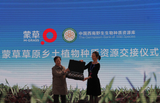 活動期間,蒙草將蒙草草原鄉(xiāng)土植物種質(zhì)贈送給中國西南野生生物種質(zhì)資源庫,通過以草為媒搭建生態(tài)保護(hù)友誼的橋梁。