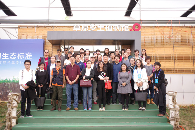 媒體記者在蒙草草原鄉(xiāng)土植物館合影留念