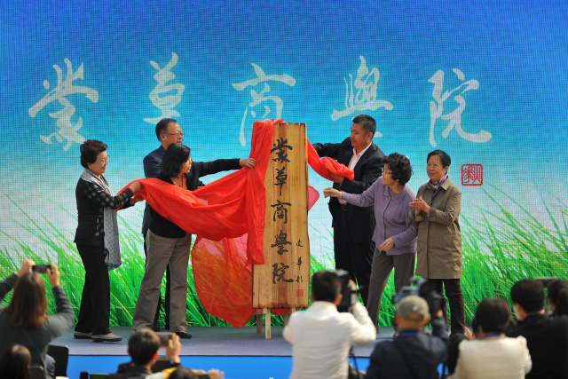 蒙草集團(tuán)董事長王召明先生及蒙草研發(fā)團(tuán)隊為商學(xué)院揭牌