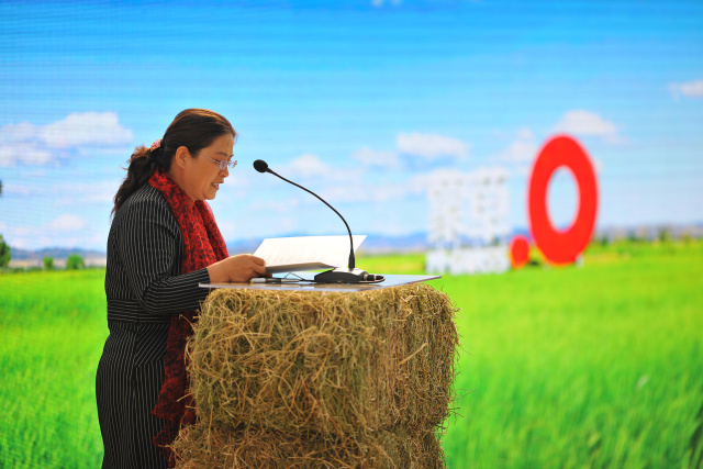 蒙草集團(tuán)總裁樊俊梅女士向與會人員分享蒙草從“抗旱”向“生態(tài)”轉(zhuǎn)變的意義