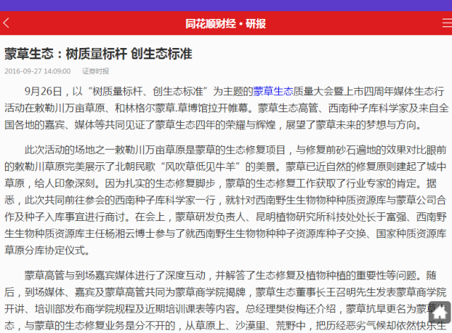 蒙草:樹質(zhì)量標(biāo)桿 創(chuàng)生態(tài)標(biāo)準(zhǔn)