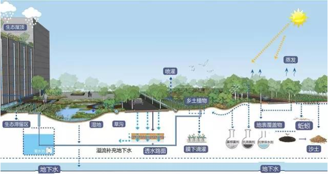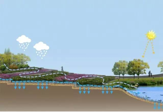 最后將地表徑流水和滲透水匯集到低洼匯水區(qū),并將匯集水用于綠化澆灌。