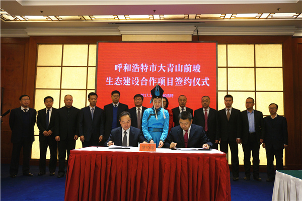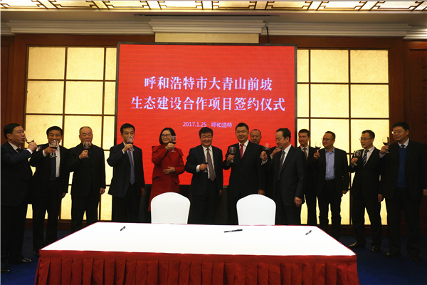 2017年1月25日,呼和浩特市人民政府與蒙草生態(tài)簽署了《大青山前坡治理項(xiàng)目合作意向書(shū)》與《呼和浩特綠色生態(tài)發(fā)展基金合作框架協(xié)議》,呼和浩特市市長(zhǎng)李杰翔、副市長(zhǎng)康存耀,蒙草生態(tài)董事長(zhǎng)王召明,土左旗、回民區(qū)、賽罕區(qū)、新城區(qū)政府分管領(lǐng)導(dǎo)等出席了簽約儀式。