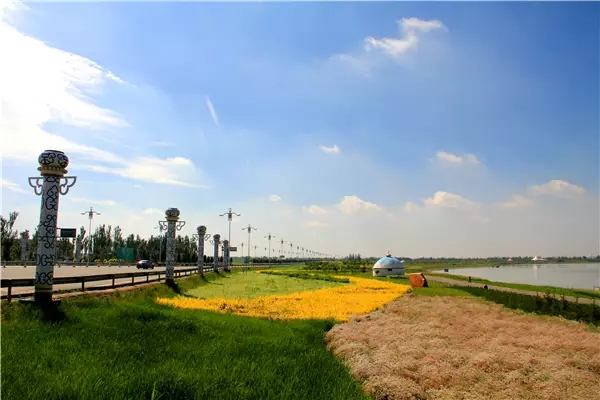 ▲鏡湖生態(tài)區(qū)緊鄰巴彥淖爾市臨河區(qū)入口