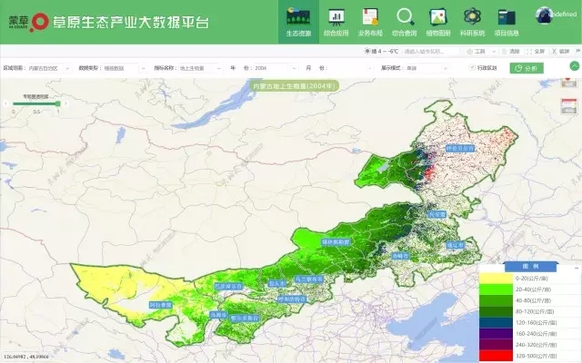 ▲大數(shù)據(jù)平臺—內(nèi)蒙古地上植物量