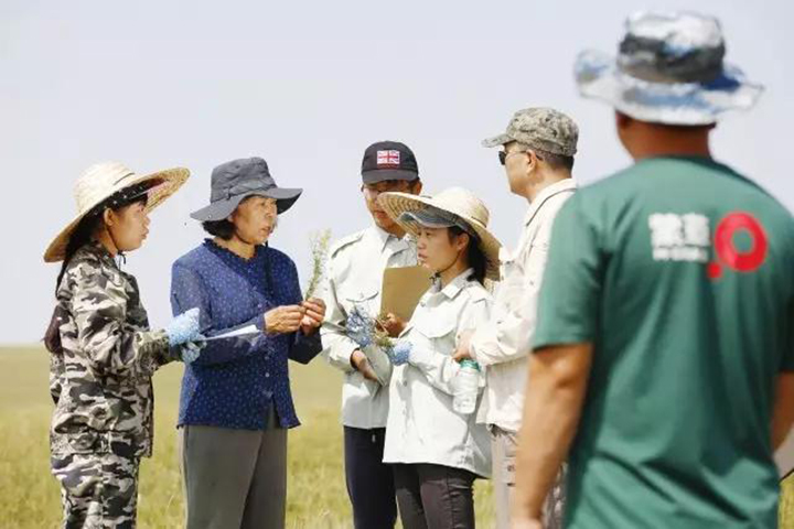 ▲蒙草草原生態(tài)系統(tǒng)研究院工作人員進(jìn)行植物多樣性調(diào)查