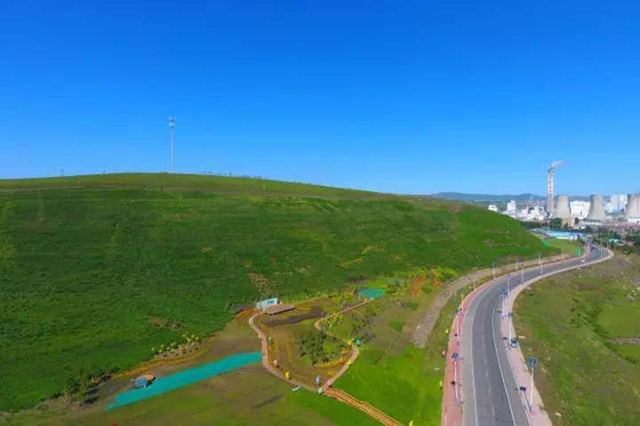 ▲蒙草霍林郭勒市濱河路托修山體修復(fù)