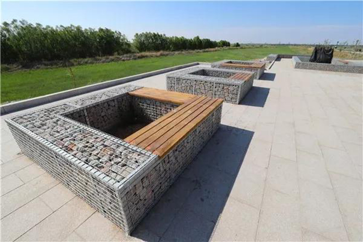 ▲蒙草烏海龍游灣項(xiàng)目的標(biāo)準(zhǔn)石籠休息凳