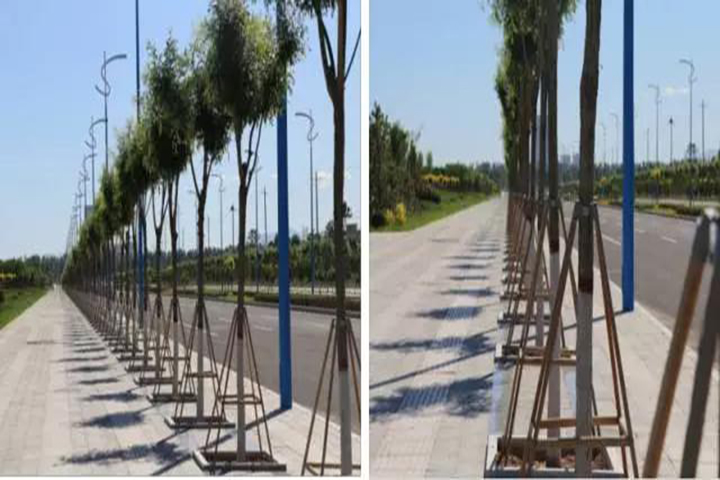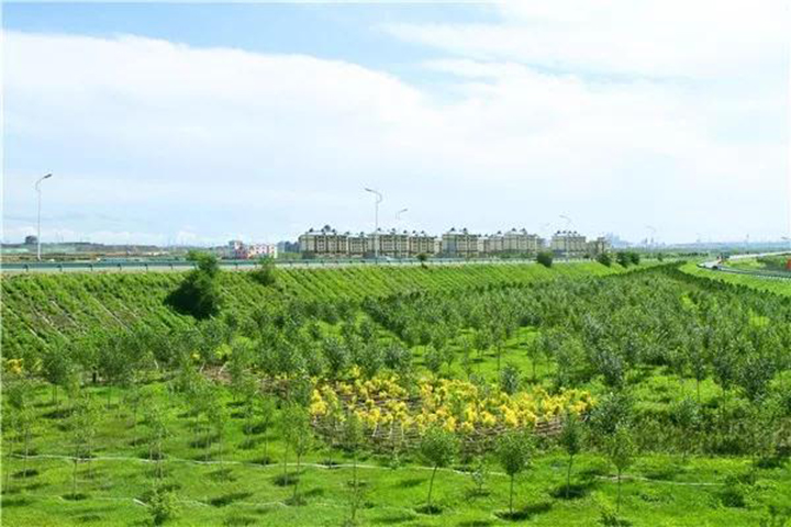 ▲蒙草滿洲里機(jī)場(chǎng)路項(xiàng)目林草結(jié)合標(biāo)準(zhǔn)種植景觀效果