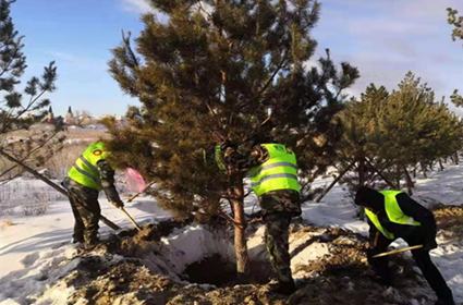 此次冬季補(bǔ)植蒙草團(tuán)隊(duì)提前籌劃開挖種植穴,共補(bǔ)植高度3.5米-5.5米不等的常綠樟子松1300余株。