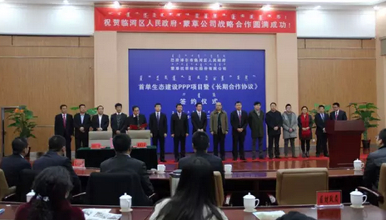 1月22日,巴彥淖爾市臨河區(qū)政府與蒙草公司聯(lián)合舉行首單生態(tài)建設(shè)PPP項(xiàng)目暨長(zhǎng)期合作協(xié)議簽約儀式,臨河區(qū)區(qū)委書記李理與蒙草董事長(zhǎng)王召明