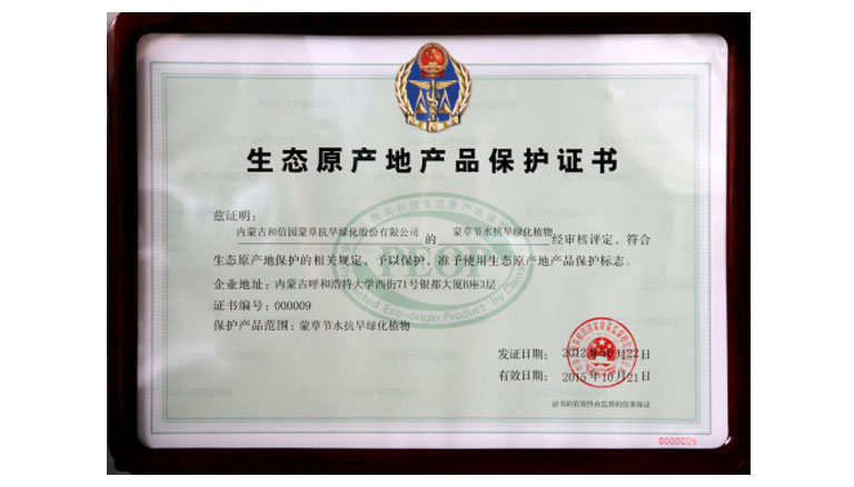 日前,國(guó)家質(zhì)檢總局正式發(fā)布中國(guó)首批15個(gè)生態(tài)原產(chǎn)地保護(hù)產(chǎn)品名單,蒙草節(jié)水抗旱綠化植物榜上有名,成為內(nèi)蒙古自治區(qū)唯一獲得該認(rèn)證的產(chǎn)