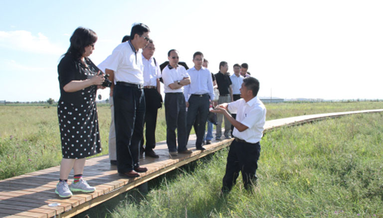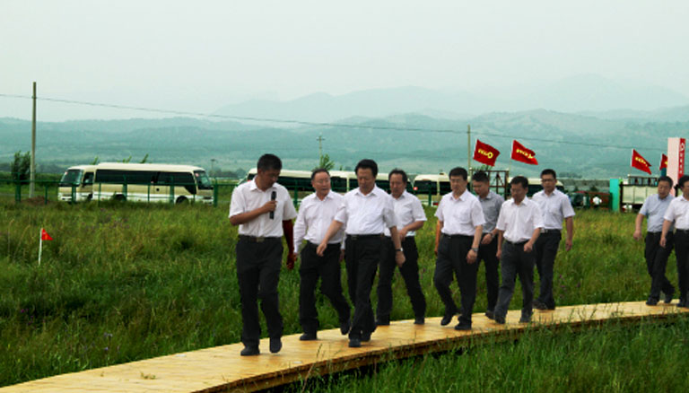 8月7日,自治區(qū)黨委書記王君、自治區(qū)主席巴特爾帶領(lǐng)自治區(qū)推動科學(xué)發(fā)展現(xiàn)場觀摩檢查組,對蒙草抗旱新城區(qū)萬畝草場建設(shè)項目進(jìn)行考察。王