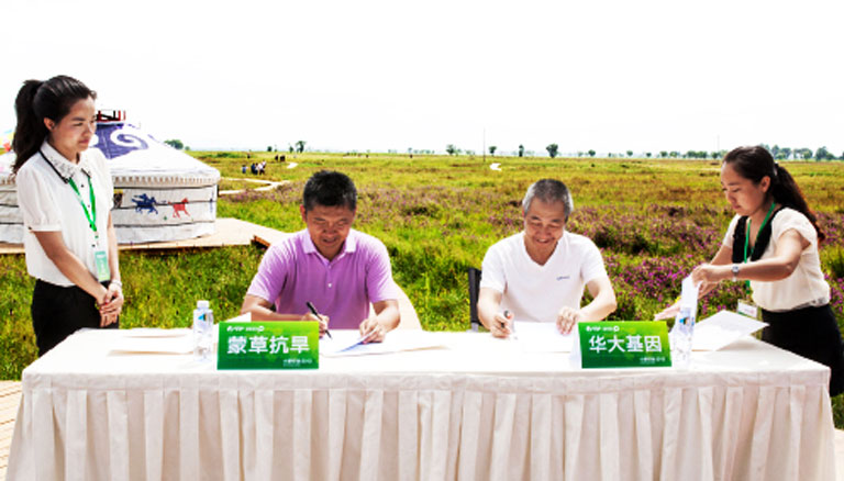 雙方在蒙草抗旱承建的呼和浩特市大青山萬畝草原現(xiàn)場簽署合作協(xié)議 在8月5日舉行的小草行動•2013系列活動中,蒙草抗旱與深圳華大基因