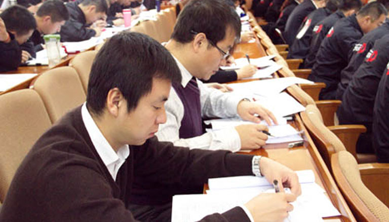 12月10日,蒙草抗旱新起點2012工程系統(tǒng)特訓(xùn)營的室內(nèi)課程培訓(xùn)正式開始。在早晨6點半到7點半的早訓(xùn)之后,上午8點30分在黨校主樓230教室由